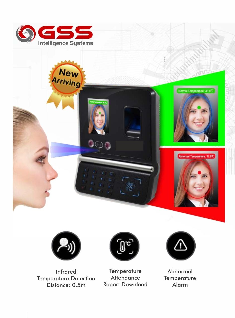 AUTOMATIC TEMPERATURE SCREENING AND FACE ATTENDANCE BIOMETRIC SYSTEM IS THE LATEST ADVANCEMENT IN THE FIELD OF IDENTIFICATION AND ENTRANCE CONTROL. FACE BIOMETRIC ATTENDANCE MACHINES ARE TOUCHLESS BIOMETRIC ATTENDANCE RECORDING SYSTEM HAVING A HIGHER EFFICIENCY AND SPEED OF FACE DETECTION AND ATTENDANCE MARKING. CONTACTLESS FACE READER BIOMETRIC ATTENDANCE AND TEMPERATURE DETECTION SYSTEM IS THE BEST SUITABLE ENTRY CONTROL SYSTEM FOR CHECKING OF HIGH BODY TEMPERATURES AND ABNORMAL PERSONS. THIS FACE BIOMETRIC ATTENDANCE SYSTEM ALSO WORKS AS MASK DETECTION AND CHECKING MACHINE TO GIVE ENTRY TO STAFF WORKER AND EMPLOYEES HAVING MASK ON THEIR FACES. OUR TEAM OF EXPERTS IS WAITING TO HERS YOUR AUTOMATIC FACE ATTENDANCE MACHINE AND TEMPERATURE SCANNING MACHINES REQUIREMENT WHICH HAS INBUILT THERMOMETER.
