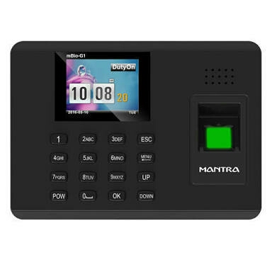 Mantra MBio Biometeic Attendance Machine for Office We are the Wholesaler/ Distributor of all mantra biometric time attendance machines and software. Mantra MBIOG1 is one of the latest models with colour display, high resolution 500dpi finger sensor, LAN port, USB port and inbuilt battery backup. For more information on Mantra Biometric products call our sales team as per given details at the bottom of this page.